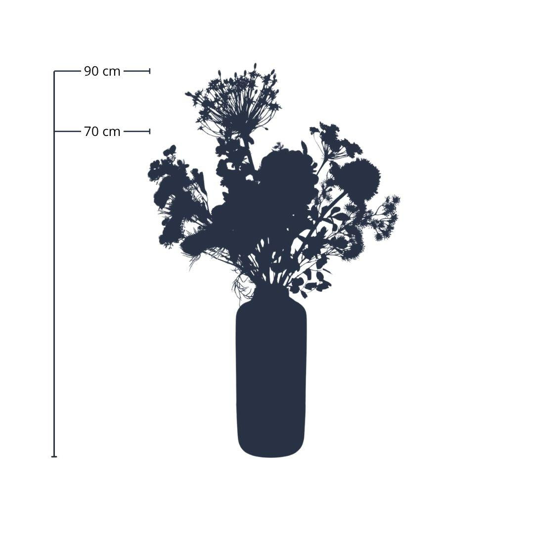 Het kunstbloemen boeket Pastel van 70–90 cm brengt een zachte, verfijnde sfeer in huis dankzij de elegante mix van blauw-, roze-, lila- en groentinten. De hoogwaardige zijdebloemen zijn met zorg samengesteld, waardoor het boeket een luxe en levensechte uitstraling heeft die moeiteloos past bij diverse woonstijlen.