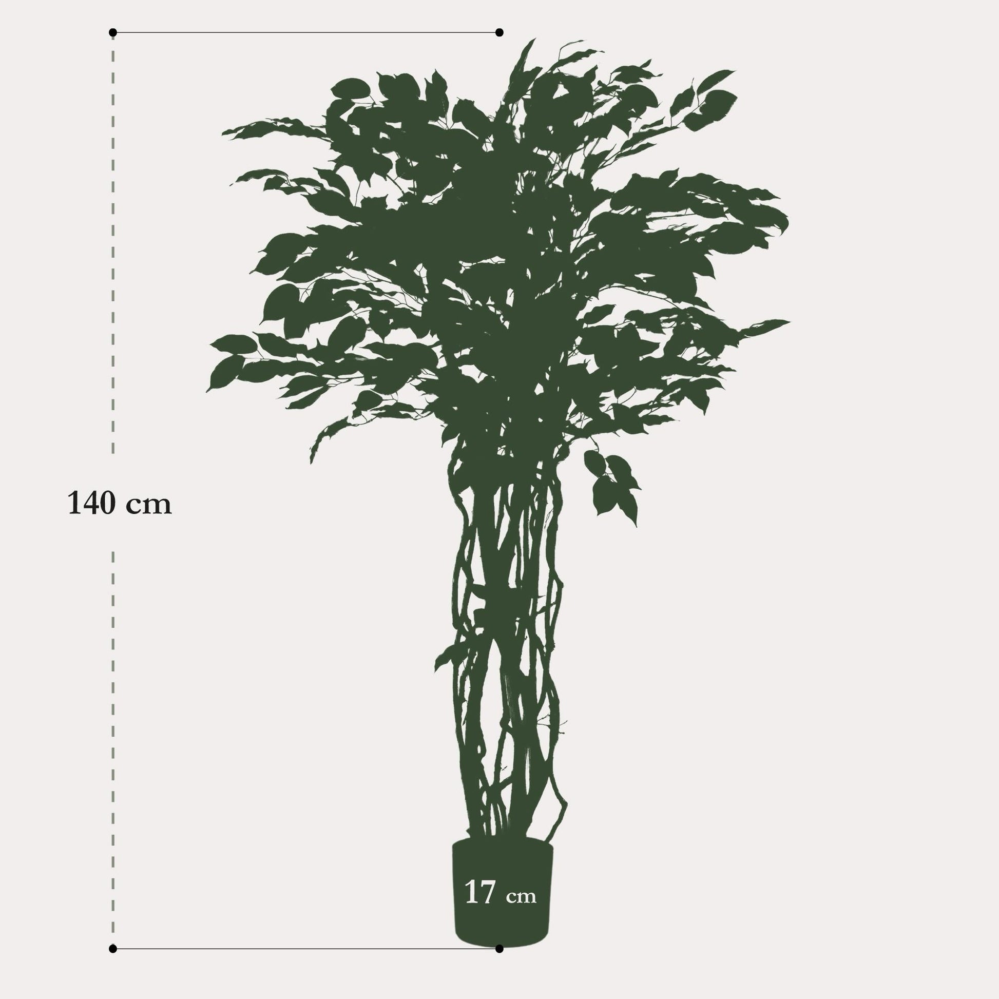 Ficus liana kunstplant 140 cm | Levensechte boom met kronkelstam voor luxe interieur
