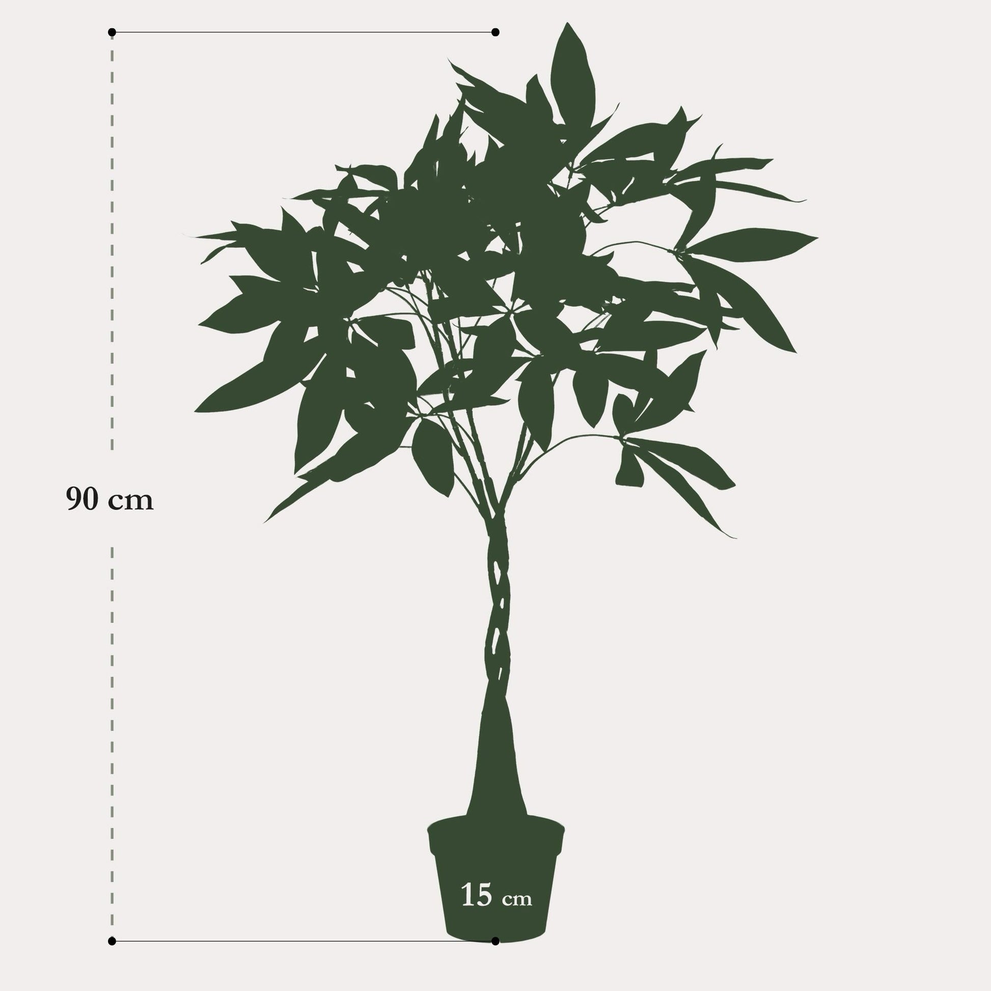 Pachira Geldboom Kunstplant 90 cm | Nepplant met Gevlochten Stam voor Woonkamer
