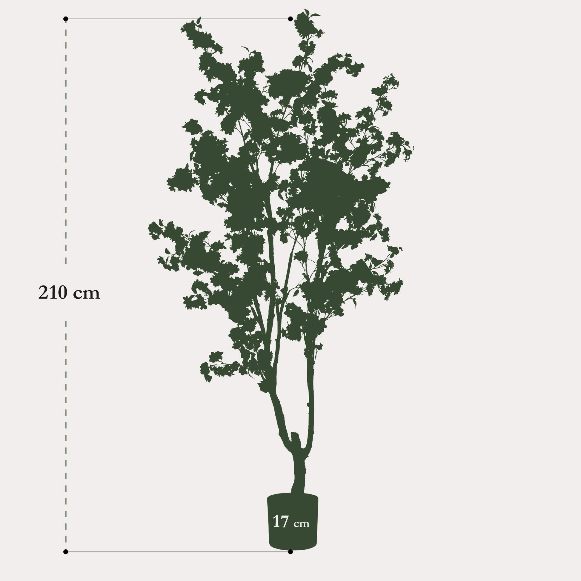 Deze witte kersenbloesem kunstboom van 210 cm is een luxe blikvanger met weelderige bloesems en een volle kroon. De boom heeft een natuurlijke takstructuur en brengt direct een frisse, serene sfeer in huis. Perfect als decoratieve kunstboom voor grote ruimtes of zakelijke interieurs.